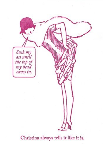 “Suck my ass until the top of my head caves in. Christina always tells it like it is.”